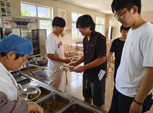 在養老院的餐廳里,實踐團成員積極協助分餐服務。他們排隊領取飯菜,協助廚師將熱氣騰騰的飯菜端到老人餐桌前,確保每位老人都能按時享用可口的午餐。這一環節不僅緩解了食堂的工作壓力,也增添了餐廳內的溫暖氛圍。