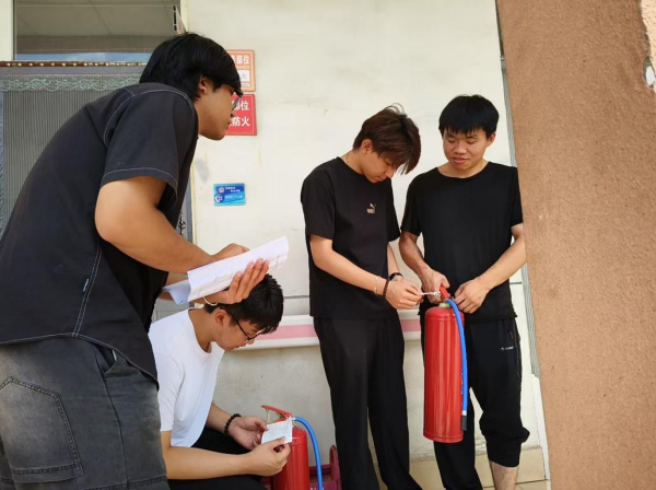 除了日常照護,安全教育同樣是實踐的重要組成部分。實踐團成員還協助檢查并學習使用滅火器,認真研究操作步驟,逐一進行實際操作,確保養老院的消防設備能在緊急情況下發揮作用。此舉進一步增強了養老院的安全保障。