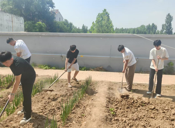 在田間地頭,幾名實踐團成員手持鐵鍬、鋤頭,冒著烈日翻土除草。整齊的勞動場景引來路人的注目,他們用實際行動維護(hù)了養(yǎng)老中心的菜園環(huán)境,為老人們的飲食提供了更加新鮮、安全的保障。這樣的勞動不僅改善了居住環(huán)境,也為老人營造了更為健康的生活氛圍。