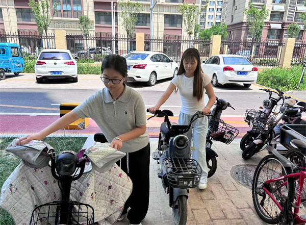 實踐團成員協助社區進行車輛擺放。社區內車輛亂停現象一度突出,消防通道時常被占,居民出行不便。在實踐團成員的整理下原本雜亂的樓棟間變得井然有序。