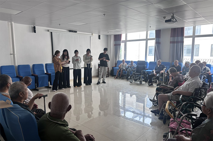 活動期間,實踐團成員們為老人們進行歌曲的展示,以優美的歌聲和動人的旋律激發老人們對節目的熱情,以愛與愛之間的傳遞展現人與人之間的關心與愛護。
