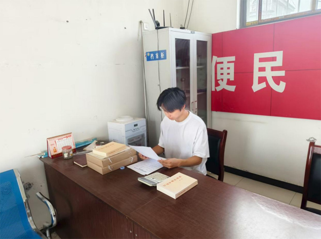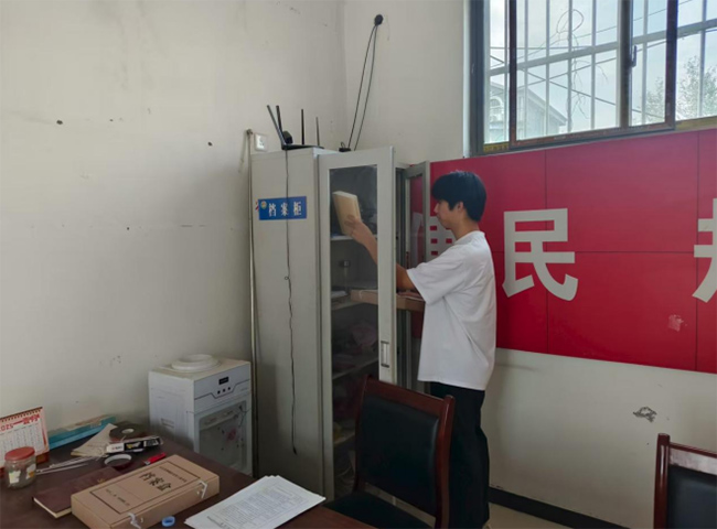 除環境整理外,成員還參與了資料查閱和檔案整理。他在辦公桌前逐一翻閱文件,將記錄和表格分類放置,保證資料歸檔準確無誤。實踐過程中,他熟悉了村委會處理日常事務的方式,也切身感受到基層治理中注重細節和規范的重要性。