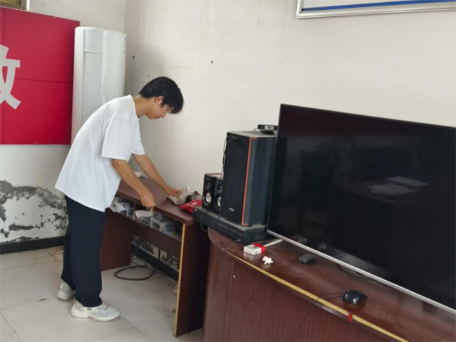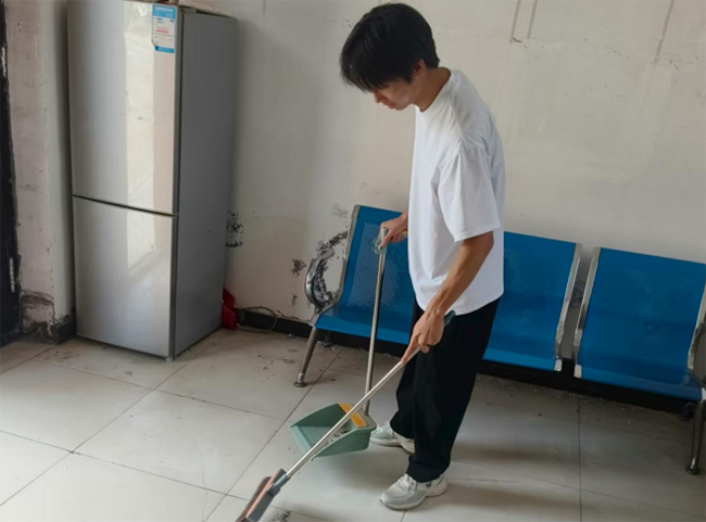 在村委會辦公室內,成員拿起抹布認真擦拭桌面,將雜亂的電器和物品整理到合適的位置,使辦公桌面干凈整潔。面對積塵較多的角落,他又用掃帚和簸箕反復清理,確保地面潔凈無塵。看似簡單的勞動,卻讓接待環境更加舒適,也為工作人員和前來辦事的村民營造了良好氛圍。