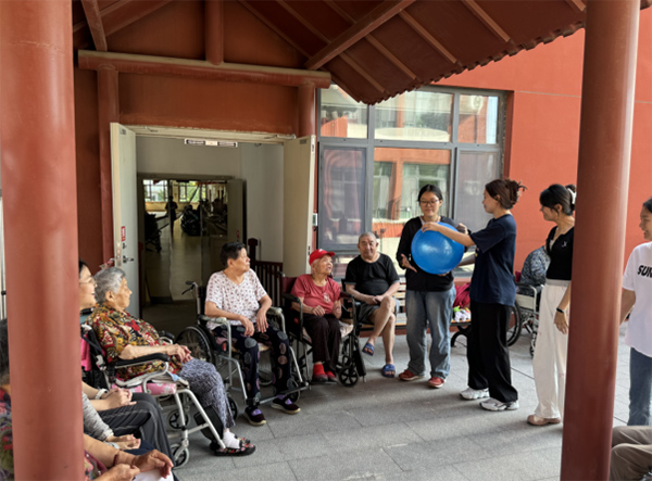 圖為實(shí)踐團(tuán)成員和老人做活動(dòng)