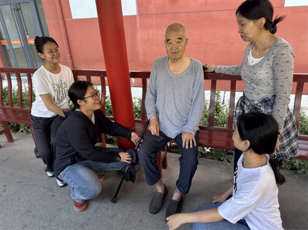 圖為實(shí)踐團(tuán)成員陪伴老人聊天