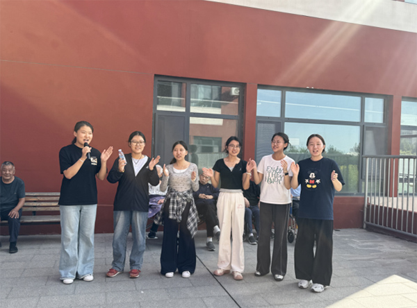 實(shí)踐團(tuán)成員給老人們準(zhǔn)備了一首歌。他們放出精心準(zhǔn)備的歌曲伴奏,跟著旋律開(kāi)唱。表演結(jié)束后,老人的掌聲響徹房間。