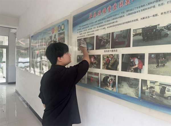 在敬老院的走廊里,志愿者認真擦拭宣傳欄,確保墻面上的公益展示內(nèi)容整潔清晰,讓來往人員能夠更直觀地了解院內(nèi)的服務(wù)信息和社會關(guān)懷舉措。這一細致的舉動不僅保持了環(huán)境整潔,也營造了更加溫馨的氛圍。