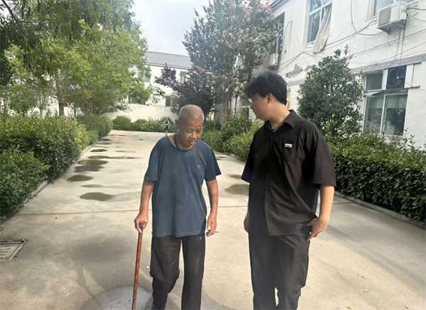 在日常陪伴中,志愿者主動走到老人身邊,耐心傾聽他們的生活點滴。在院內(nèi)的庭院里,一位拄著拐杖的老人慢慢行走,志愿者在一旁陪伴,時不時交談幾句,幫助老人分散注意力,讓散步過程多了幾分輕松與安心。這樣的陪伴讓老人們在日常生活中感受到有人關(guān)心和守護。