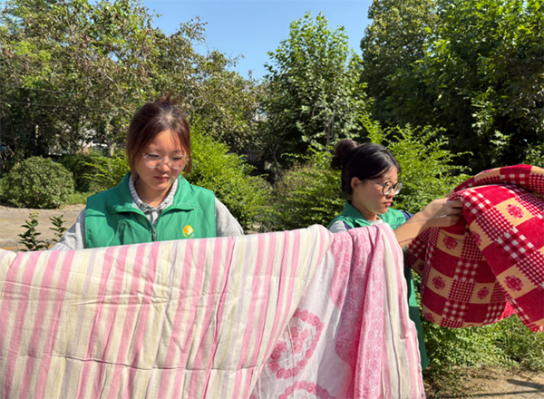 圖為實踐團成員幫老人晾曬被褥