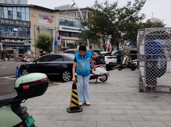 在日常服務中,志愿者主動承擔社區環境維護的工作。她拿起掃帚與簸箕,清理道路上的落葉與垃圾,使社區環境更加整潔有序。雖是炎炎夏日,但她始終保持專注與耐心,確保每一個角落都煥然一新。居民們路過時,紛紛投來贊許的目光,社區環境也因她的努力而更加宜居。