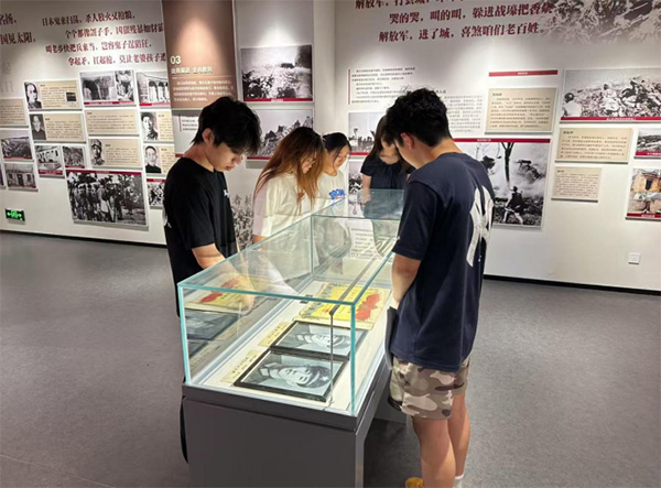 實踐團成員首先走進烈士陵園展館,在講解員的帶領下,認真參觀展出的歷史文獻與革命實物。展柜中一張張黑白老照片,一份份泛黃的文件,讓成員們深刻感受到革命先烈拋頭顱、灑熱血的英勇事跡。展館中陳列的抗戰資料詳實翔實,成員們駐足凝視,沉浸其中,仿佛穿越時空,置身于那個戰火紛飛的年代。