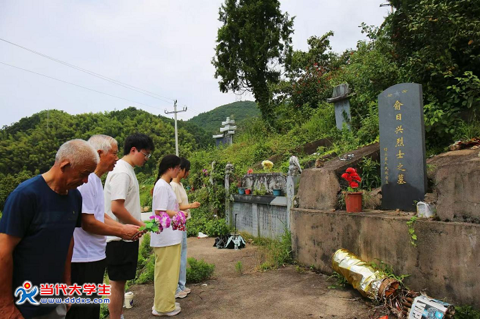 “青山處處埋忠骨,何須馬革裹尸還”。在浙西南革命之路上,無數革命先烈用鮮血鑄就的精神長城,詮釋著平凡生命所能達到的高度。正值紀念中國人民抗日戰爭暨世界反法西斯戰爭勝利80周年,在當地村民的陪伴下,實踐隊成員不畏炎日,重走紅軍路,追溯紅色故事,賡續紅色精神。在村民的深情講述中,實踐隊成員參觀了東俞戰斗舊址,并了解到,眼前這座墓碑的主人俞日興是1893年生人,出生在三溪鄉三溪山村東俞自然村,1946年7月光榮地加入了中國共產黨,并成為地下黨東俞聯絡站負責人。抗戰中,敵人對俞日興嚴刑逼供,但俞日興堅貞不屈,只字不吐,不懼生死,從容就義,高喊“共產黨是殺不盡的,革命自有后來人!”。