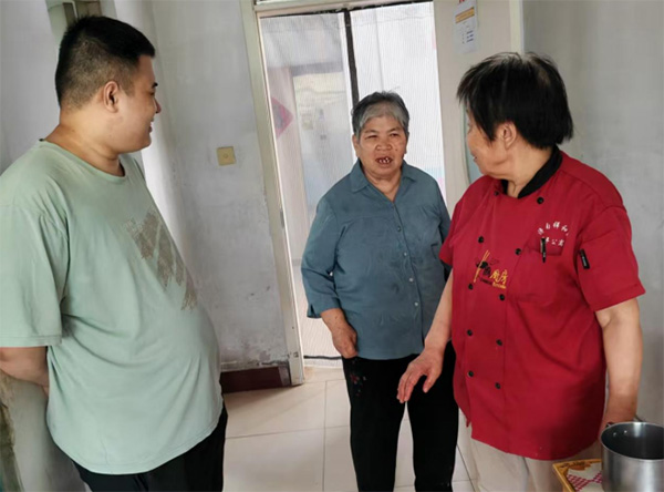 圖為“程源”實(shí)踐團(tuán)成員與工作人員溝通了解老人們需求