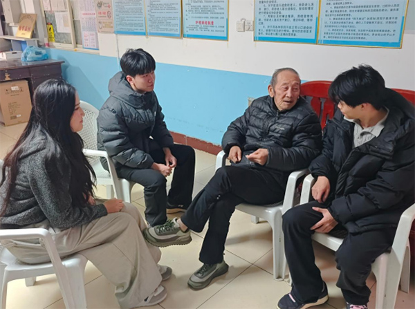 圖為“向陽而生”實踐團成員與老人交談