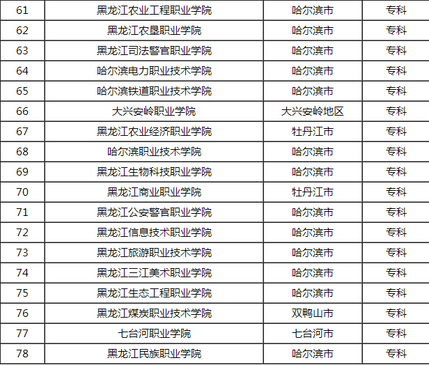 黑龍江一本大學(xué)、二本大學(xué)、三本大學(xué)、專科共有78所大學(xué),以下是黑龍江省所有大學(xué)名單。