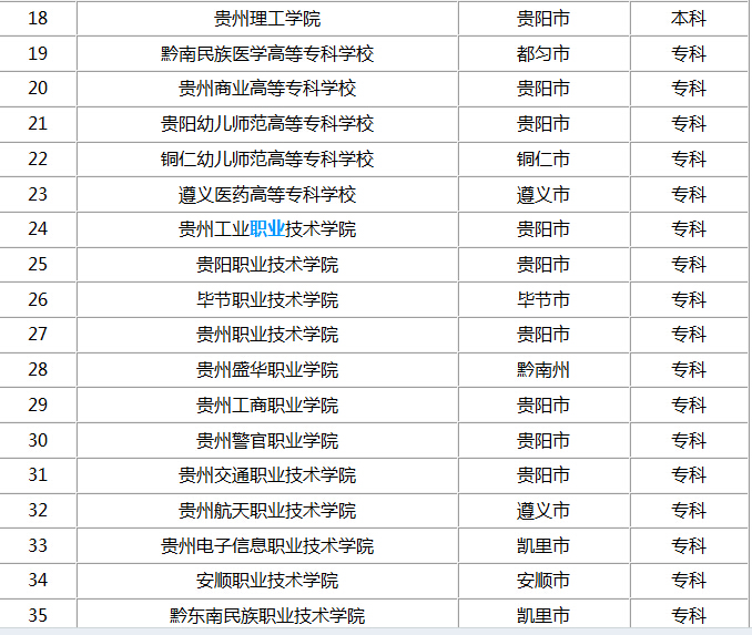 導讀:貴州的悻悻學子每當臨近高考之際想必都會十分關注自己下家鄉的大學。作為高三的學生,都希望可以選擇一個不錯的大學,如果想要去貴州就讀的話,那么可以了解一下貴州有哪些大學,這樣就可以方便自己報考了。下面小編就為大家統計下貴州一共有哪些大學。貴州共有一本大學、二本大學、三本大學、專科44所大學,以下是貴州省所有大學名單。