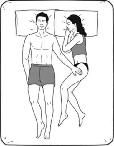 姿勢不定,手腳或搭在對方身上,或和對方的手腳接觸:你們個性獨立,但在多數問題上能達成一致。主動伸出手腳的一方依賴性更強,需要確認枕邊人一直都在。