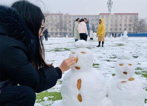 大學生堆出創意雪人