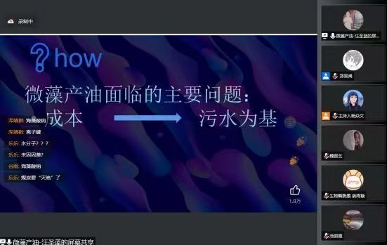 電子科大十年金獎團隊iGEM兩位負責同學:姜雨璇和汪圣藍分別為我們解密了“生物酶脫墨”及“萊茵衣藻排污產油”兩項自主研發環保黑科技。云端科普依舊引發了觀眾們的熱烈討論與共鳴,活動直播期間共計點贊量2.6萬。