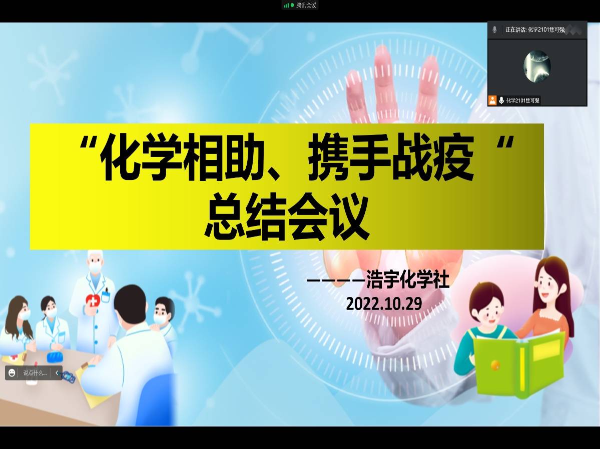 疫情反反復(fù)復(fù),給我們帶來了心理上的困擾以及生活中的不便,為了考察同學(xué)們能否認(rèn)識(shí)到化學(xué)對(duì)于生活以及自身安全的作用、考驗(yàn)同學(xué)們生活化學(xué)的相關(guān)知識(shí)與防疫意識(shí),化學(xué)化工學(xué)院浩宇化學(xué)社于2022年10月29日下午14:30分許,結(jié)合QQ群及騰訊會(huì)議的方式在線上舉辦了“化學(xué)相助,攜手戰(zhàn)疫”活動(dòng)。