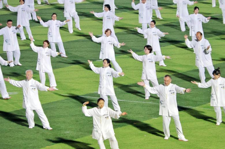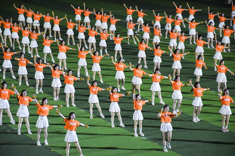 在現場觀眾的陣陣掌聲中,唐亞陽宣布此次運動會正式開始。教職工為運動會帶來了大型太極拳團體操表演。他們的動作行云流水,一招一式有板有眼、剛柔并濟,不僅展現了太極的美與力,也完美詮釋了“謙和、自信、包容”的太極精神。由各學院學生帶來的團體操表演,列列長隊時而交錯、時而起伏,用整齊劃一的動作、活力四射的激情展示著積極向上的精神面貌,彰顯科大學子的風采。