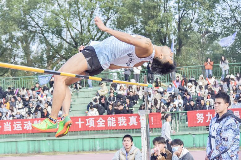 熱身完畢后,跳高運(yùn)動員們整裝待發(fā)、斗志昂揚(yáng)。助跑、跳躍、跨桿、落地……運(yùn)動員們在欄桿前接連不斷蹬地起跳、挺腰后仰,輕捷的身影從空中掠過。體育學(xué)院22級運(yùn)動訓(xùn)練五班的肖康寧以男子乙組單項(xiàng)1.94米的成績力壓群雄,勇奪第一,這一成績也是他自身比賽中所創(chuàng)下的最好成績。商學(xué)院21級財(cái)務(wù)管理一班的周璇賽后分享道:“跳高是我擅長且熱愛的項(xiàng)目,從決定參賽起,我積極參加學(xué)院組織的訓(xùn)練,我堅(jiān)信保持良好狀態(tài),賽前充分準(zhǔn)備,方能取得突破。”最后,她以1.25米的佳績獲得女子甲組單項(xiàng)第三名。