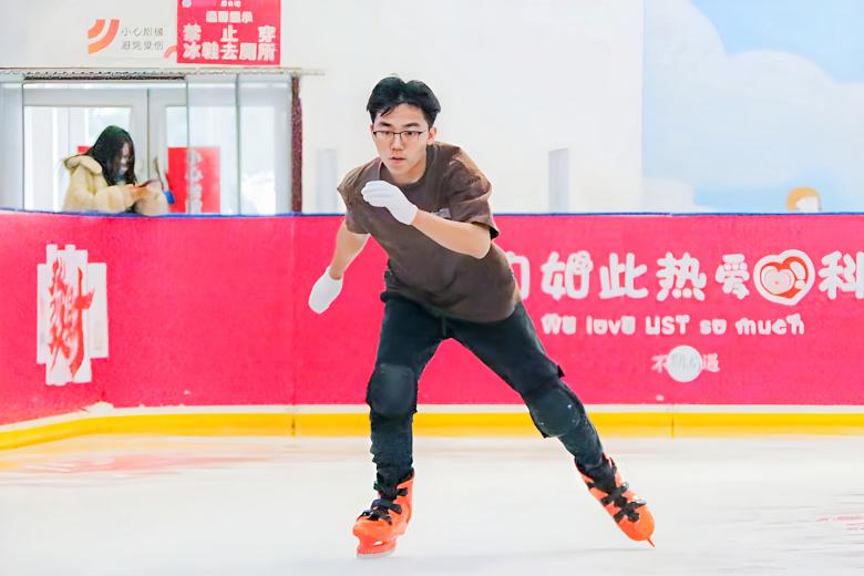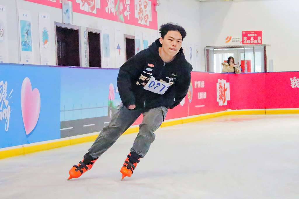 速度與激情的碰撞,綻放出青春的火花。冰刀在冰面上勾勒出優美的弧線,身體與冰面形成漂亮的傾角,給觀眾們帶來視覺上的享受。“能有機會參加女子300米賽事,我們要感謝學校為我們提供滑冰的場地,讓冰雪運動進入大眾的視野。”教育學院21級教育學二班歐文在采訪中向學校表示感謝。