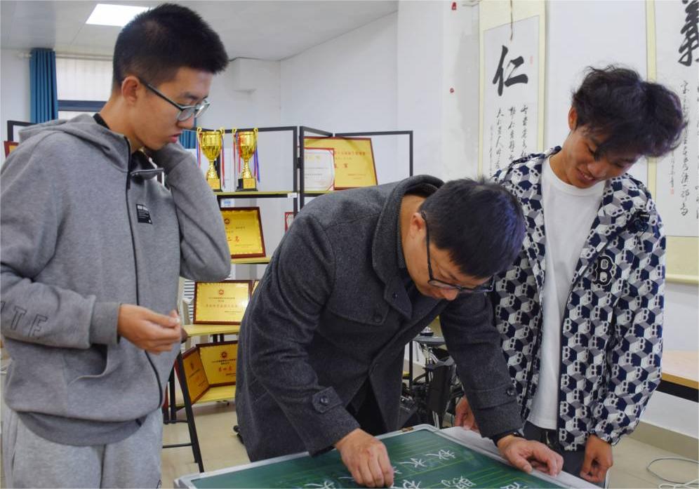 隨后,支部青年們紛紛開始動手實踐,將林鴻韜老師傳授的書法理念、書寫技巧等運用到自己的三筆作品中。在實踐中,林鴻韜老師親自為支部成員提供針對性指導,支部青年們也篤學不倦積極向老師發問。現場熱烈非凡,師生共同營造出良好的書香教學氛圍。