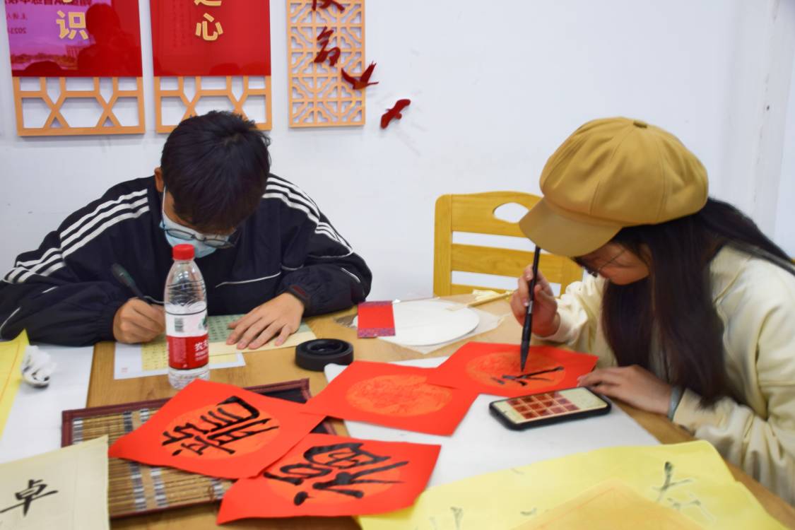 03 師生共書三筆文創在歡聲笑語中,本次活動也迎來最后一個環節——訓練成果展示,支部青年們與林老師共寫、共繪具有學院特色、支部特色的文創作品。支部青年們各發其長,運用三筆技能將原本平平無奇的書簽、紙扇、對聯等搖身一變為優秀文創產品。