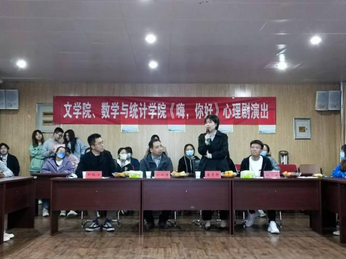 程成 何怡 王盛釗 栗新惠/文 關碩 王盛釗/圖)為幫助同學們提高心理健康水平、提升心理素質能力,營造良好的心理健康氛圍,4月30日,文學院、數學與統計學院在逸夫教學樓N606教室開展《嗨,你好》心理劇演出。數學與統計學院黨委副書記唐李靜老師、學生發展中心劉柏濤老師、文學院心理專干田裕心老師、數學與統計學院心理專干趙飛云老師以及部分同學觀看了本次演出。