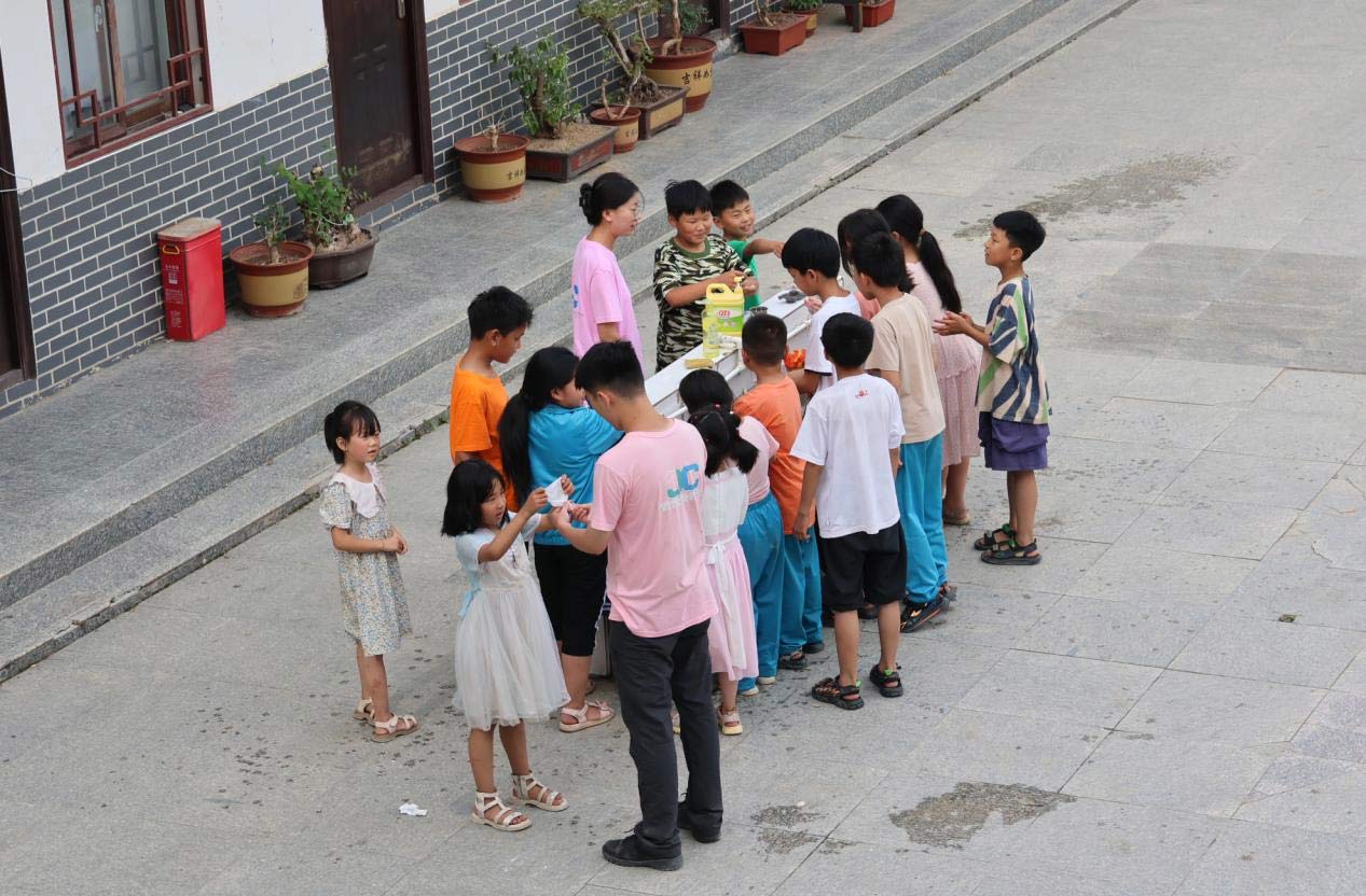 (圖為“金種子”社會實踐團隊成員帶領同學們做勞動教育后的整理善后工作。左琦 攝。)