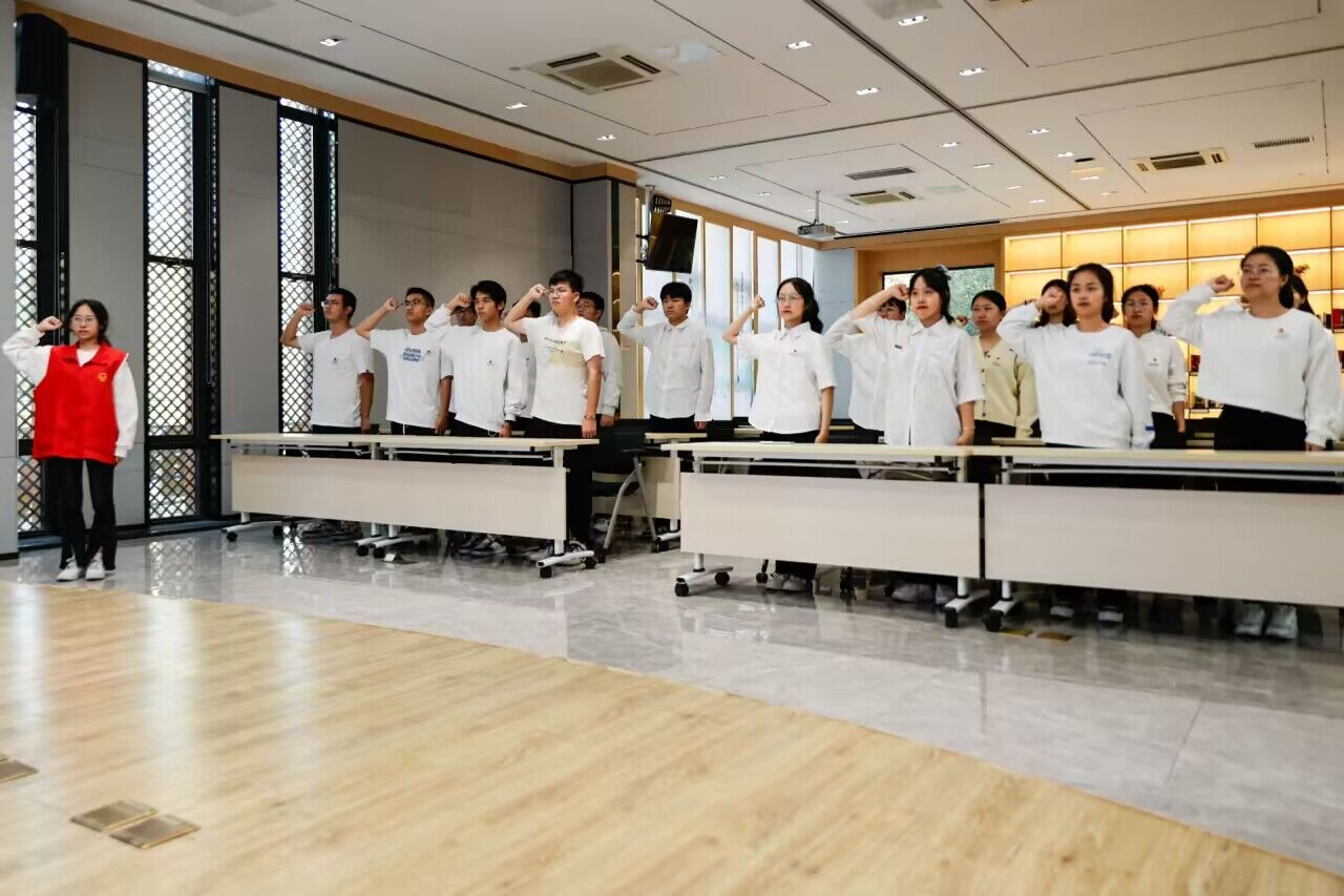 為堅定支部成員投身志愿服務的決心,團支書郭宇彤引領支部成員們進行莊嚴的志愿者宣誓。“我愿意成為一名光榮的志愿者”嘹亮的宣誓聲充分展現支部成員們對志愿活動的由衷熱忱與對奉獻精神的孜孜追求。