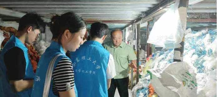 圖為村委書記李從吉帶領實踐團成員參觀漁網加工現場