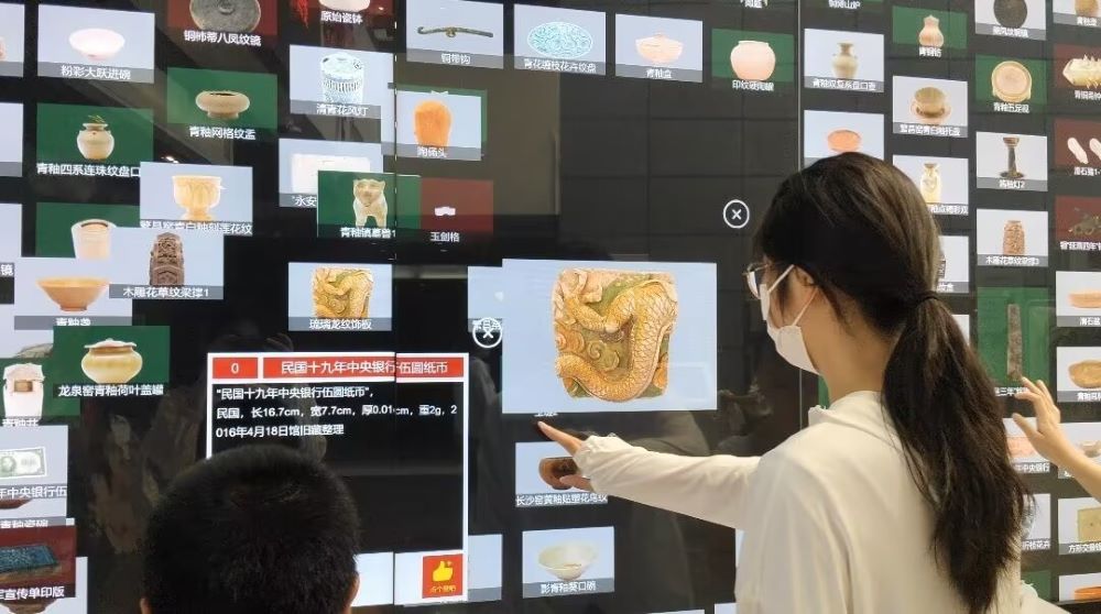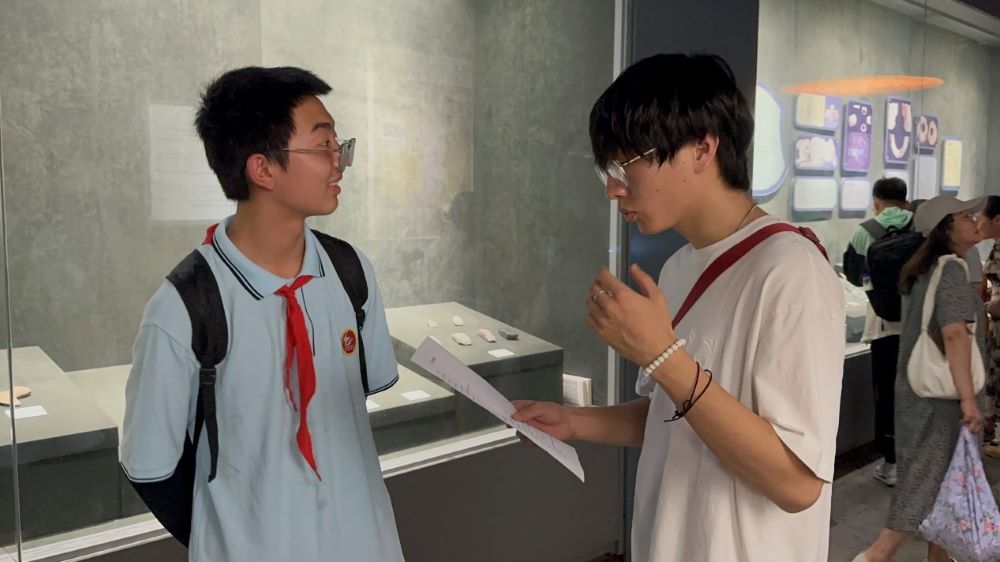 圖為實踐隊成員操作智慧觀館觸屏展示板。中國青年網通訊員 王虹嵽攝