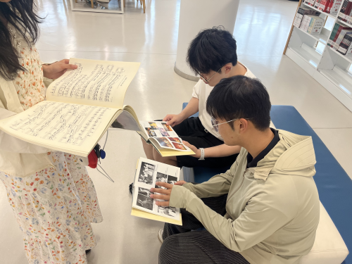 圖書館古籍部相關工作人員介紹:“這些文獻中,最早的樂譜可追溯至清乾隆年間,其中《琵琶三弦合譜》完整記錄了伴奏樂器的指法圖譜,是研究宮調演奏技法的‘活化石’。” 實踐團成員們邊記錄邊拍照,將關鍵段落整理成電子文檔,計劃制作 “文獻中的五大宮調” 數字檔案庫。