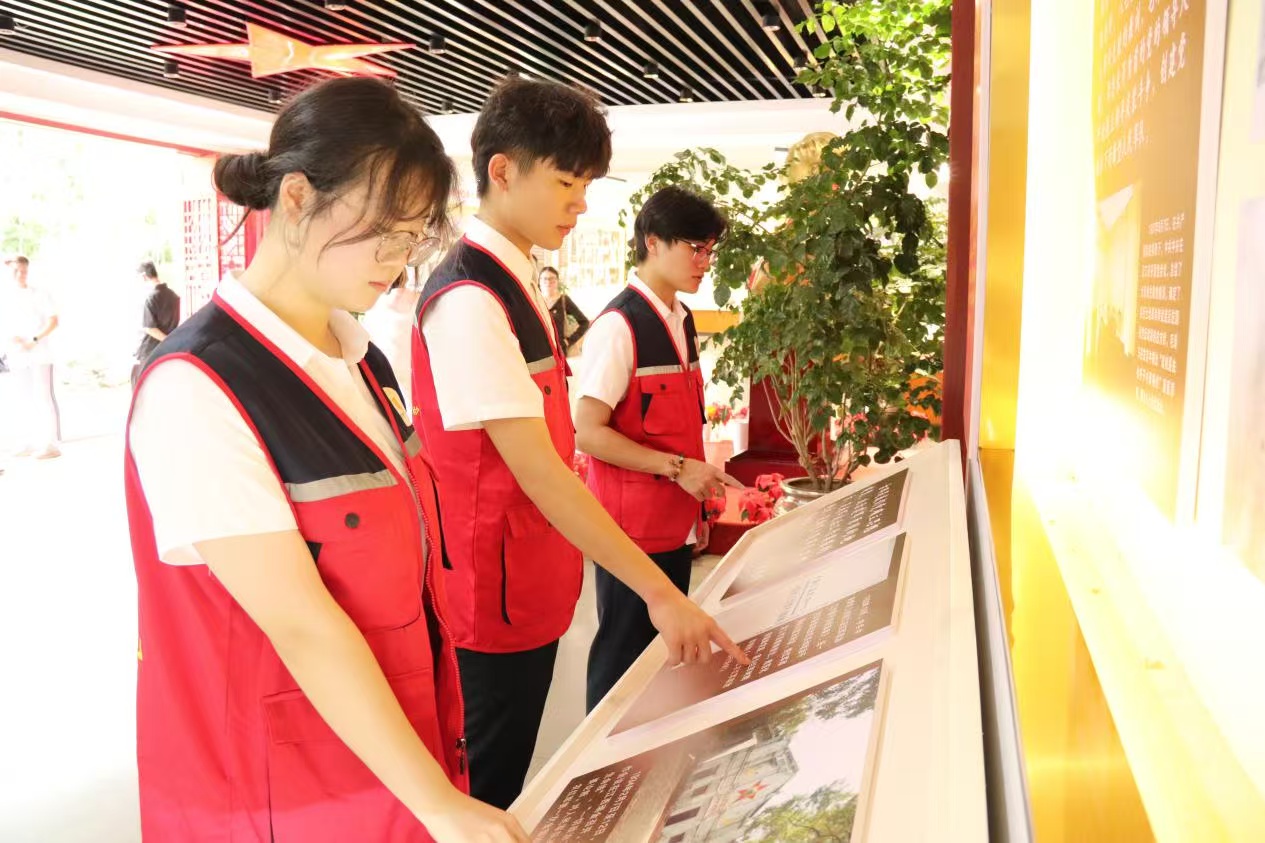 (圖為服務隊成員在古田片區弘揚愛國精神)